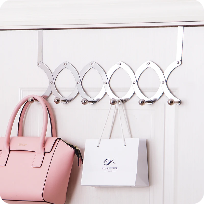 Bathroom Retractable Folding Door Hanger Cap Organizer Seamless Clothing Rack Creative Coat Handbag