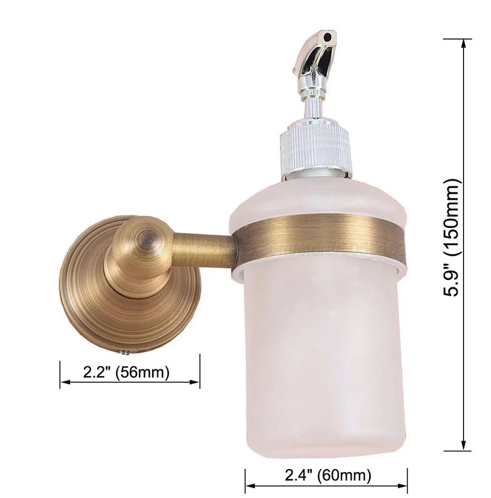 Antique Brass Bathroom and Kitchen Glass bottle liquid Soap Dispenser Wall Mounted Soap dispensers