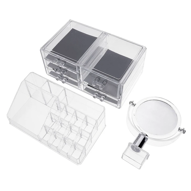 HIGH QUALITY Large Mirror Clear Cosmetic Organizer Box Makeup Storage Drawer Desk Bathroom Makeup Brush Lipstick