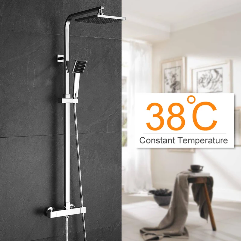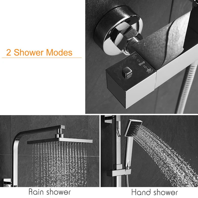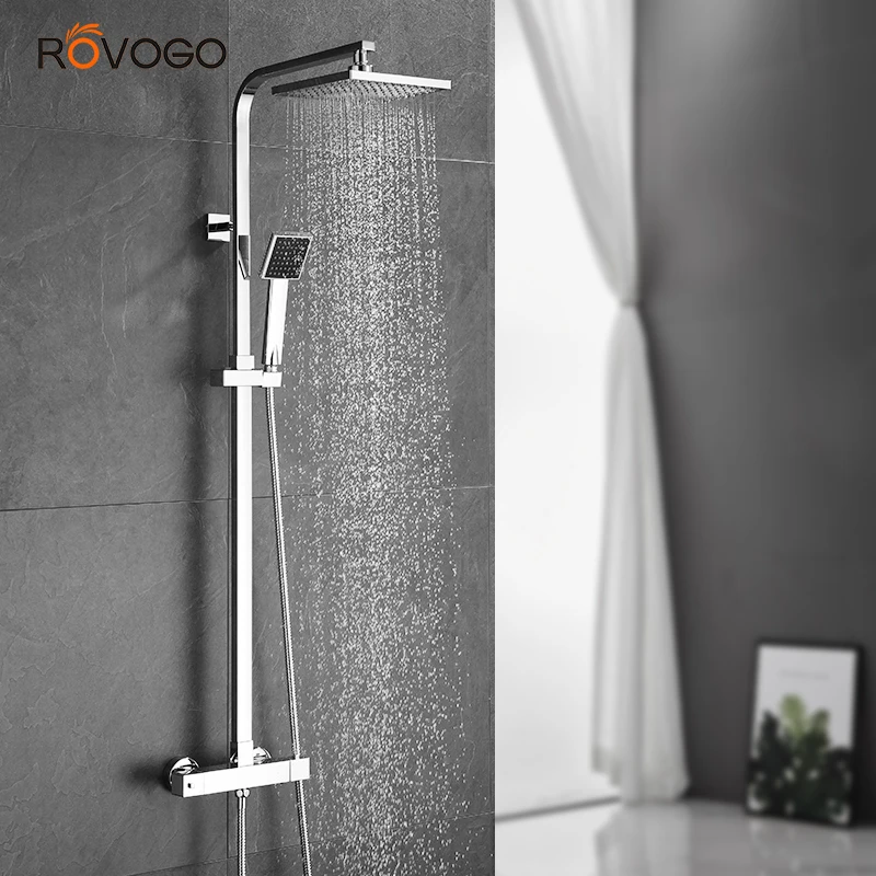 Best Seller ROVOGO Bathroom Thermostatic Shower System with Rainfall Shower Head Adjustable Shower Bar 2-Funtio