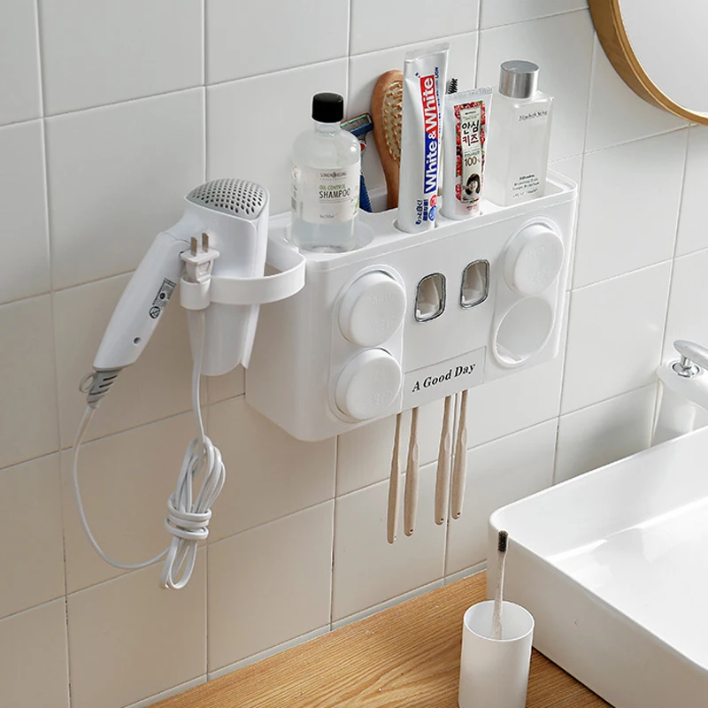 HOT SALE Family Automatic Toothpaste Dispenser Multifunction Adult&Kids Toothbrush Holder Bathroom Storage R