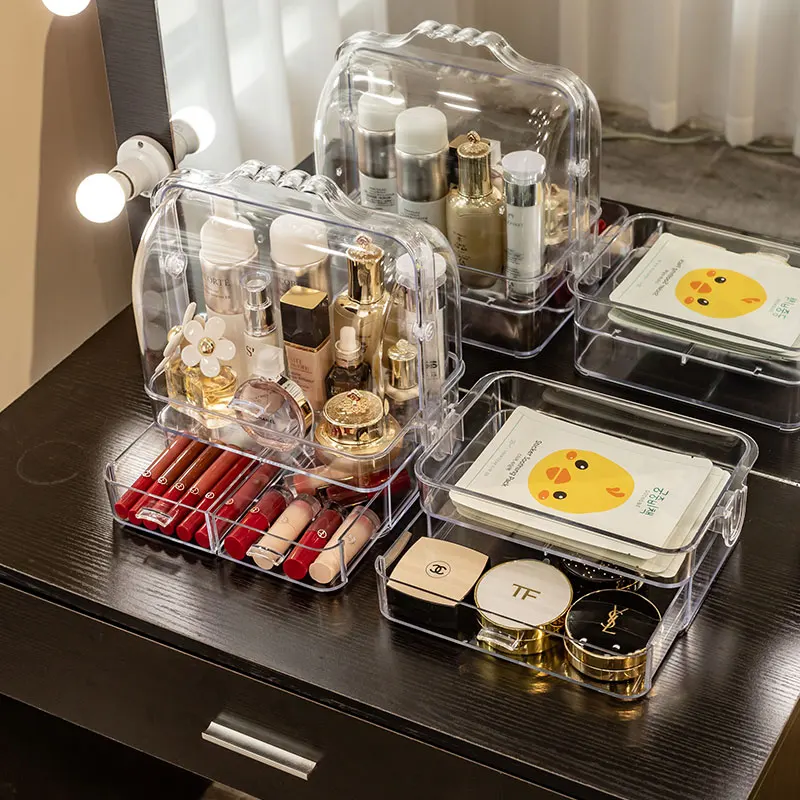 Acrylic Transparent Dustproof Cosmetic Storage Box Portable Makeup Organizer Desktop Jewelry Cosmet