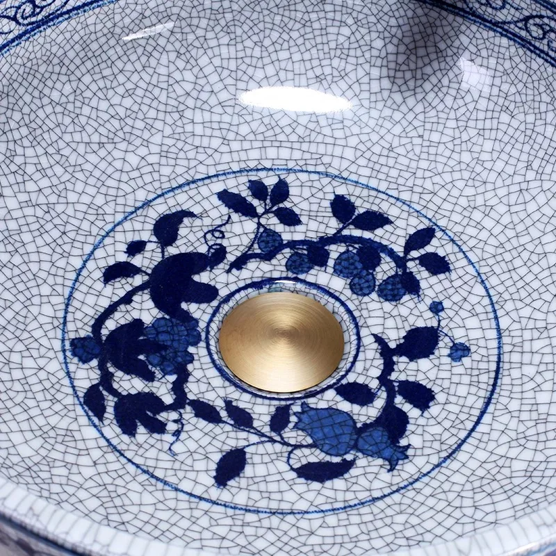 Chinese Hand Painted Blue And White Porcelain Bathroom Sinks