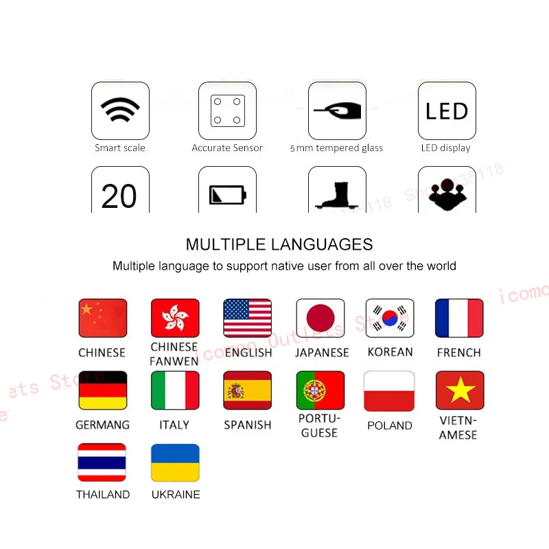 ORIGINAL iCOMON Digital Body Scale Floor Electronic Smart Bathroom Weighing Scale Bluetooth Human Weight Fat