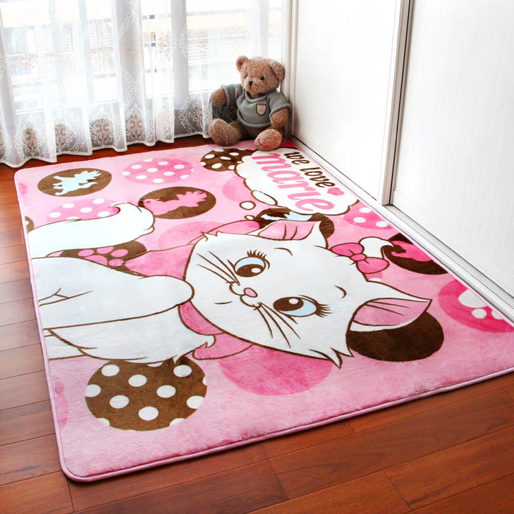 Pink Cat/Brown Bear Cartoon Rug Soft Cozy Coral Fleece Thicken Kids Children Play Crawling Carpet f